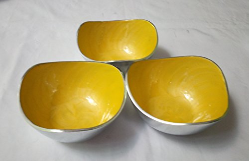 Hind Handicrafts Decorative Aluminium Yellow Coated Dining Serveware Bowl Set of 3 ( 4 x 4 x 2.5 in )