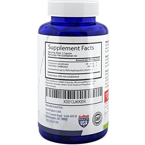 -. Binding : Health and Beauty -. Brand : Huntington Labs -. EAN : 0793574994829 -. Feature : GARCINIA CAMBOGIA - is a natural way to lose weight, boost metabolism, and control the appetite for long-lasting weight loss. This thermogenic supplement contains antioxidants to increase energy and boost immune system so you look better and feel better. / SUPER ANTIOXIDANT SUPPORT - These Garcinia fat burners contain natural antioxidants that protects and detoxifies the body. These cleanse capsules detox and improve immunity for overall health and wellness. / 95% HCA - Hydroxycitric Acid (HCA) helps to inhibit ATP Citric Lyase which is responsible for turning carbs into fat. Once Citric Lyase is blocked, the carbs become usable energy which can be used to improve workout performance! / NATURAL APPETITE SUPRESSANT - This Garcinia Cambogia extract pure potent supplement suppress appetite for ultimate weight management. These capsules are filler-free. / 100% CUSTOMER SATISFACTION -This premium bottle with fast acting and rapidly absorbed bioavailable capsules is produced in a facility that exceeds GMP standards. -. IsAdultProduct : 0 -. Label : Huntington Labs -. Manufacturer : Huntington Labs -. MPN : LE -. PackageQuantity : 1 -. PartNumber : LE -. ProductGroup : Health and Beauty -. ProductTypeName : HEALTH_PERSONAL_CARE -. Publisher : Huntington Labs -. Studio : Huntington Labs -. Title : Best Garcinia Cambogia Extract Raw 95% HCA Weight Loss Pills for Women and Men - Fat Burning Supplement Boost Metabolism and Increase Energy - Natural Antioxidant for Immune System, 60 Capsules -. UPC : 793574994829