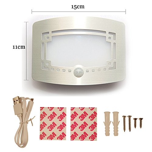 WisHome USB Rechargeable Aluminum 12 LEDs Motion Sensor LED Wall Sconce Stick-on Anywhere Motion Activated Night Light for Closet Stairs Hallway Kitchen Bathroom Porch (Natural White)
