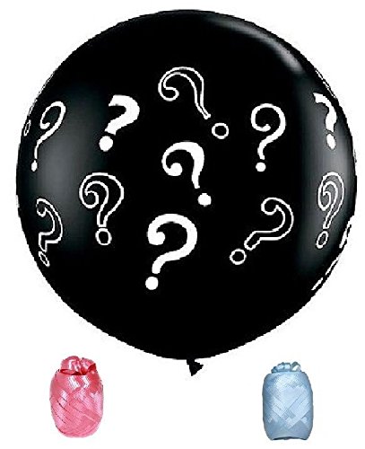 -. Title : Black Gender Party Reveal ? Question Mark Baby Shower Boy Girl 36" Latex Balloon PLUS RIBBON!