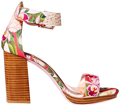 Two-piece sandal featuring piping trim, gold-tone buckle/grommets, and stacked wood at heel and platform Lightly padded footbed Brand : Ted Baker Item model num : Lorno MPN(PartNumber) : FD06466-677 EAN : 0842550136569 Product Dimensions(LxWxH) :