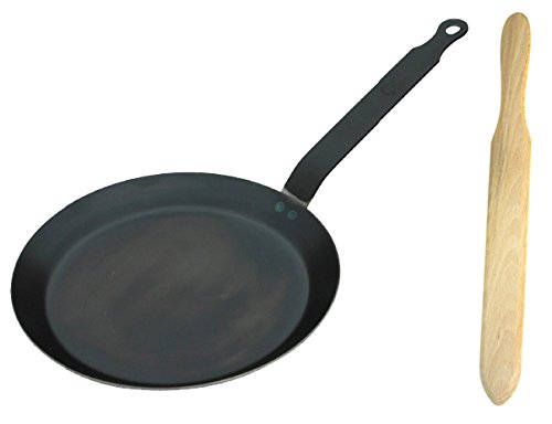 -. Title : De Buyer Blue Steel Crepe Pan Bundle with Beechwood Spatula