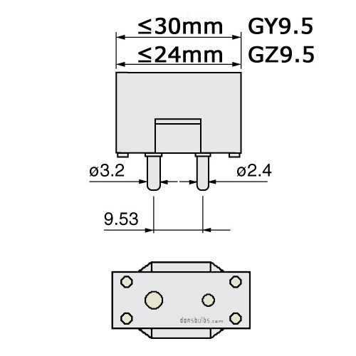 - Base: GY9.5 2-Pin Prefocus, 3200K, Rated Life (Hr): , Luminous Flux (LM): ,