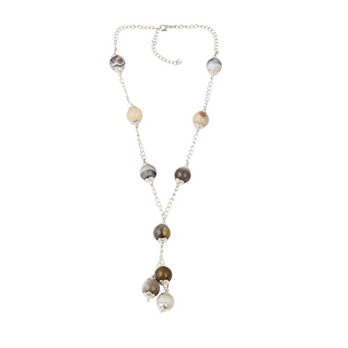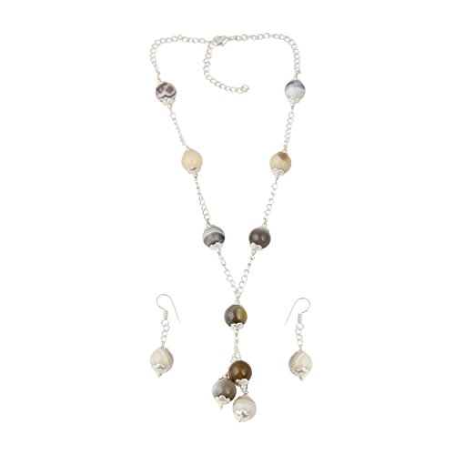 This mesmerizing necklace set is hand-crafted by Pearlz Ocean. This Botswana Agate necklace set will make a wonderful gift for a special someone. The set includes a stunning necklace, pendal and dangle earrings. The Botswana Agate are with a gentle luster that reflects light discreetly. The length of the necklace in this is 18 inches and it has an extension of 2 inches and the earrings are 2 inches long. These necklace set will complement the wearer's elegant and glamorous look.Its a best Jewelry Gift collection for your loved one's on all events of Birthday, Valentine, Thanksgiving, Christmas, mother day and many more.Feature