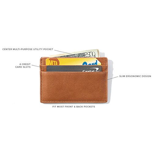 -. Feature : 2.75"H x 4"W / 2 credit card slots on either side / Center multi-purpose utility pocket / Slim ergonomic design / Fits most front and back pockets