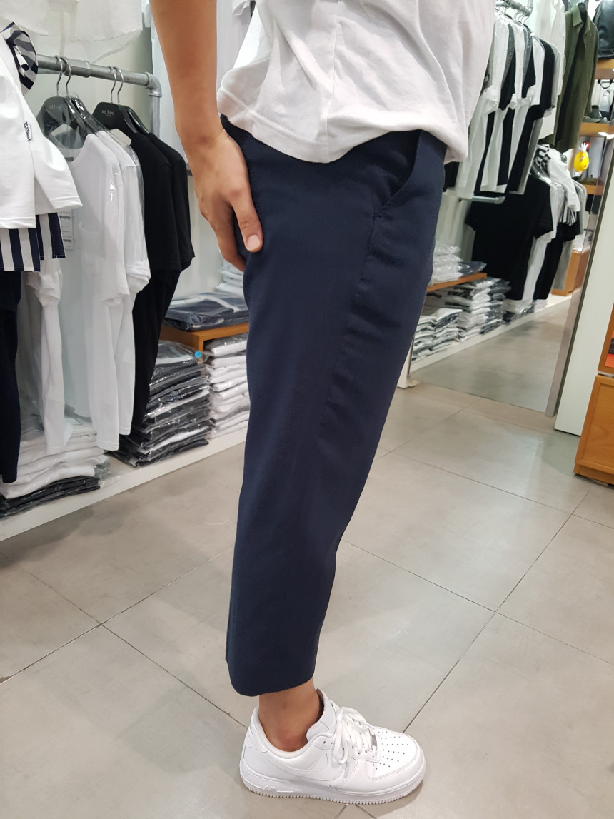 AD HOC 남성 와이드 팬츠 여름 원단으로 정말 시원하며~ 착용감이 예술인 팬츠 우선 마네킹 착장 사이즈는 30 사이즈입니다 마네킹 만으로는 핏이 잘 안 보여서 34 입으시는 허벅지 두꺼우신 분이 32를 피팅 하셨는데.. 사이즈가 아주 좋았습니다! 허벅지 두꺼우신 분들 강력 추천!! 사이즈는 정 사이즈로 가셔서 와이드 한 느낌으로 입으시기 좋을듯합니다~