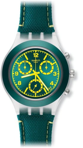 -. Title : Swatch Coleslaw Chronograph Teal Plastic Mens Watch SVCK4070