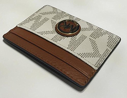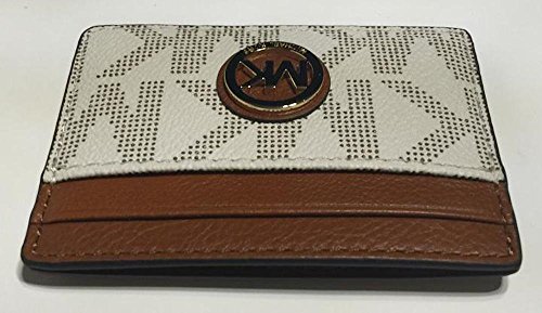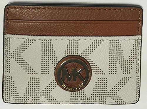 Michael Kors Fulton Signature MK Vanilla PVC/Luggage Leather Credit Card Case Holder