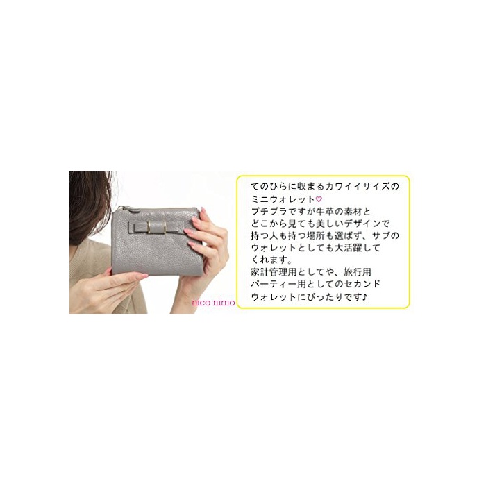 Nico nimo 니코니《모》 (nico-nimo) 소가죽 부드러운 반 접기 지갑 귀엽 리본부 여성용 미니 워렛