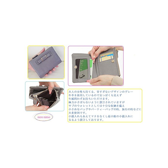 원본상품명: nico nimo (ニコニモ) 二つ折り財布レディス牛革 ミニ財布レディス本革 小さめ財布 コンパクト財布レディス牛革 ミニ財布リボン