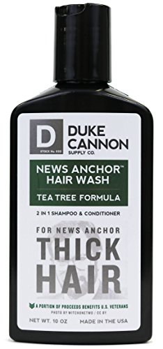 -. Binding : Misc. -. Brand : Duke Cannon -. Feature : The Pulitzer P.R.Ize for Hair is not a thing, but if it were, you'd be looking at it right now. / Duke Cannon's News Anchor 2-in-1 Hair Wash is formulated with premium ingredients to clean and condition the hair of hard working men. / Protein for strength. Tea Tree Oil and Menthol to wake you up. No harsh parabens. New and improved clean mint scent. / For the man whose hair commands the respect of others, there is no substitute. / News Anchor Hair Wash. Your hair is a weapon. -. IsAdultProduct : 0 -. Label : Duke Cannon -. Manufacturer : Duke Cannon -. NumberOfItems : 1 -. ProductGroup : Beauty -. ProductTypeName : BEAUTY -. Publisher : Duke Cannon -. Studio : Duke Cannon -. Title : Duck Cannon News Anchor Thick 2-in-1 Hair Wash