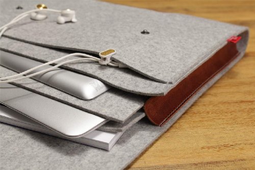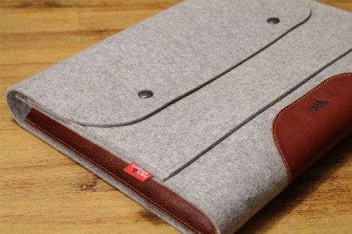 With a special unit mass of 900g/m² and a thickness of 3mm it is very shock absorbing for your device. Wool felt is water repellent, antistatic, recyclable and very soft to the touch.