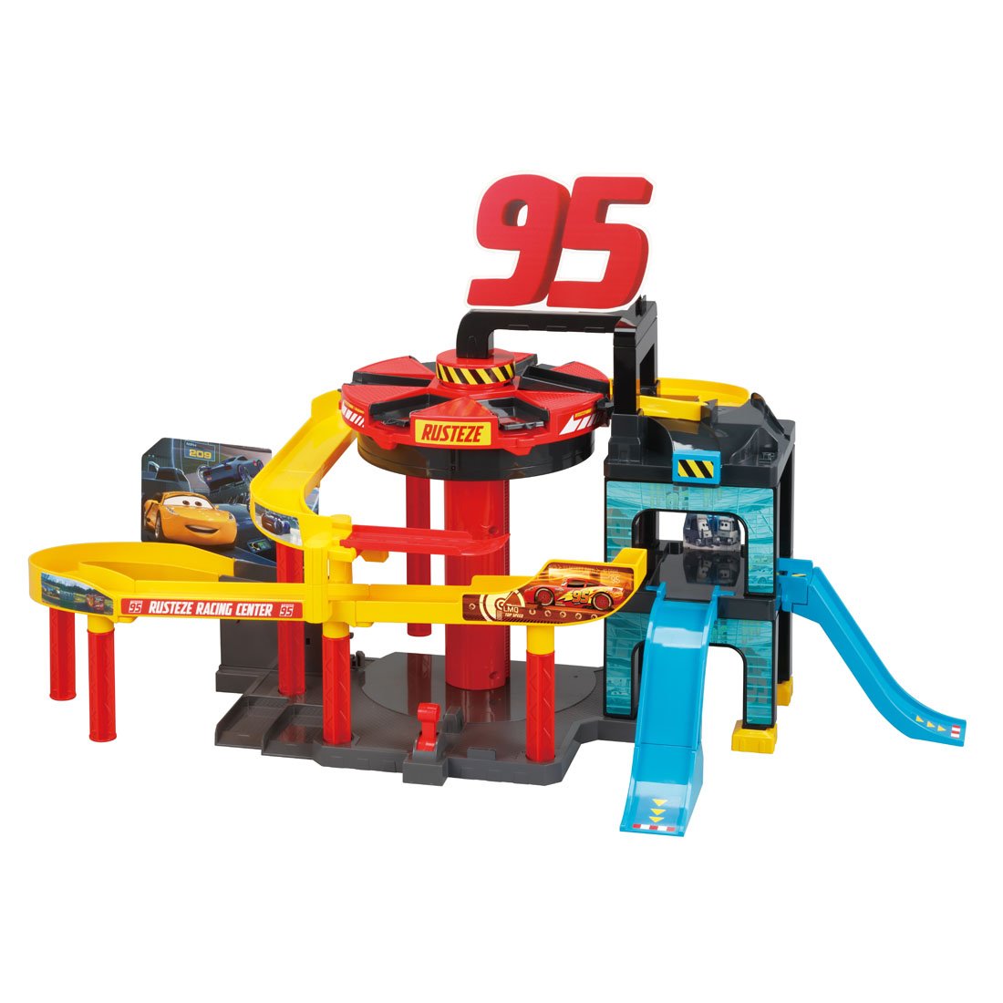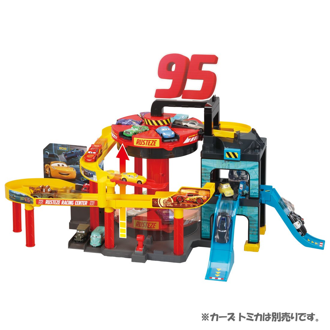 It is a set of large elevator and outer circumference course which puts six cars Tomica, rising while rotating.