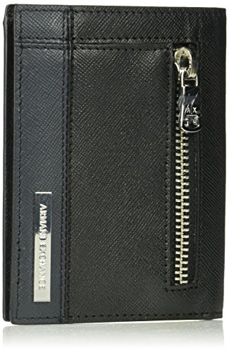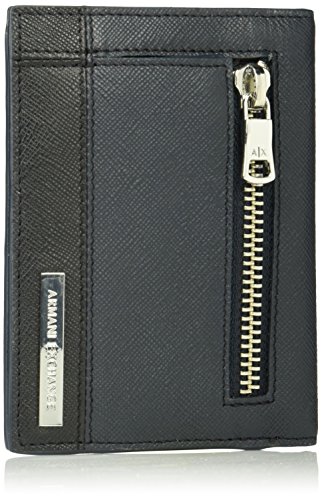Product DescriptionThis bi color saffiano leather wallet has a zipper pocket that is perfect for coins. Metal plated Armani Exchange logo.0