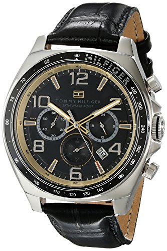 -. Binding : Watch -. Brand : Tommy Hilfiger -. Color : black -. Department : mens -. EAN : 0885997093576 -. Feature : Quartz movement / Case diameter: 46 mm / Stainless steel case, black croco embossed strap, black chronograph dial with black tachymeter bezel / Durable mineral crystal protects watch from scratches / Water resistant to 165 feet (50 M): suitable for swimming and showering -. IsAdultProduct : 0 -. Label : Tommy Hilfiger -. Manufacturer : Tommy Hilfiger -. Model : 1790936 -. MPN : 1790936 -. PackageQuantity : 1 -. PartNumber : 1790936 -. ProductGroup : Watch -. ProductTypeName : WATCH -. Publisher : Tommy Hilfiger -. ReleaseDate : 2013-07-03 -. Size : One Size -. Studio : Tommy Hilfiger -. Title : Tommy Hilfiger Men's 1790936 Sport Luxury Chronograph and Black Leather Strap Watch -. UPC : 885997093576