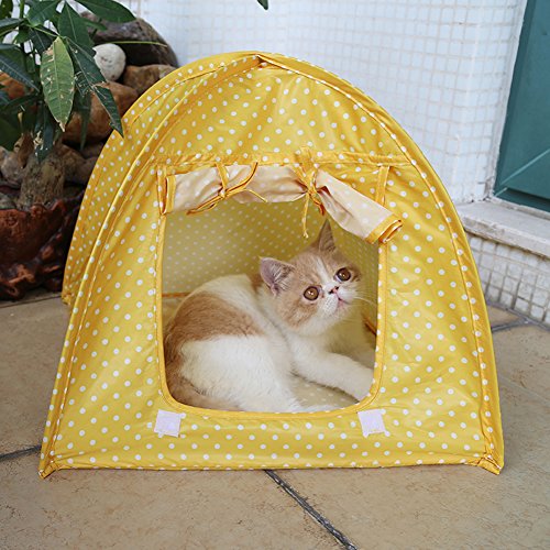 Feature: Easy to clean. Removable. It is quick and easy to assemble and take down. Comfortable and Fashionable Dots Style dog house and cat house. Provide a comfortable and secure place to rest for your pet. Great camping house for your pet when travelling with you. Please take a note that this picture is taken under natural light, the color will be little different due to different light and computer monitor. Packaging contents: 1pc x pet tent