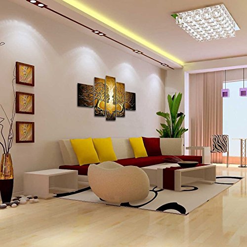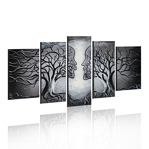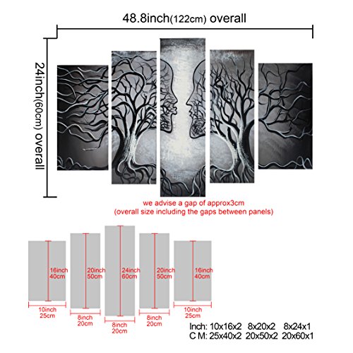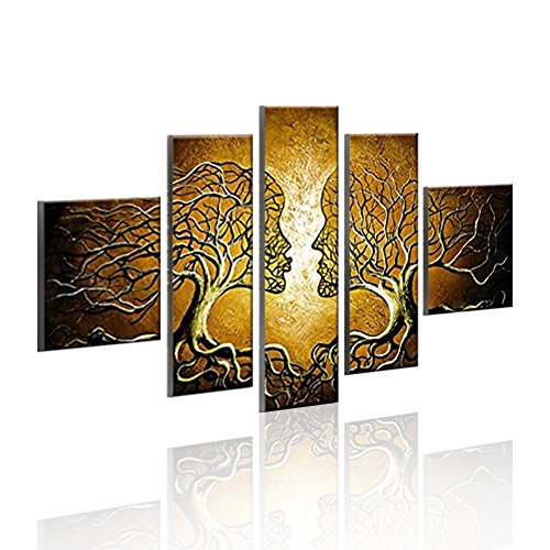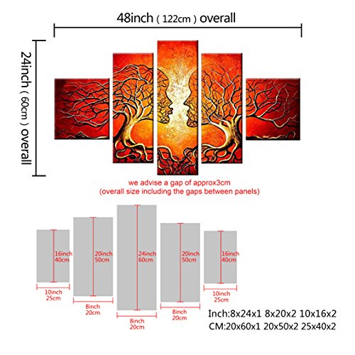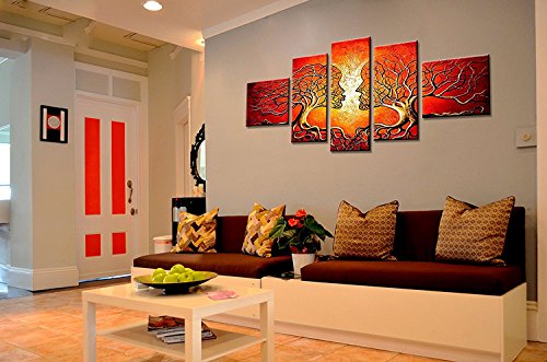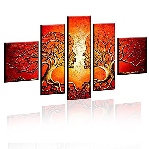 -. Title : VASTING ART 5-Panel 100% Hand-Painted Oil Paintings Couple Human Kiss Tree Love Story Modern Abstract Stretched Wood Framed Ready Hang Red Face Home Decoration Wall Decor Living Room Bedroom Kitchen