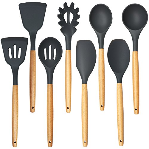 -. Title : shxmlfプレミアムシリコンCooking Utensilsセット- 8 Pieceシリコンヘッド木製ハンドルキッチンベーキングツール、環境に優しい、BPAフリー、ノンスティック