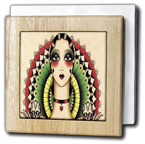 3dRose nh_62386_1 Mexican Art Deco Lady With Skulls Wall Art, Natural
