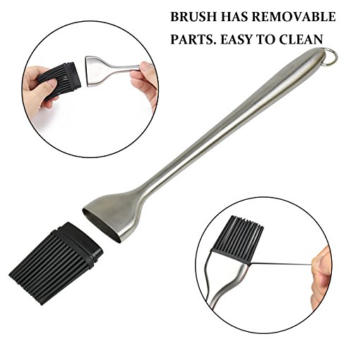 FEATURES&EASY TO CLEAN: Large capacity bulb and tip are removable,- Brush and Stainless Steel Handle Easy dissemble. Can be easily cleaned,Dishwasher Safe- Stretchy .stays cool the touch.With Ergonomic-is comfortable to hold from any angle - Silicone Bristles with 12 Inch Stainless Steel Handle , is long enough to keep you away from the heat. Also, this brush is heat resistant up to 480⁰F so it will not melt.