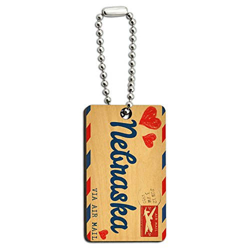 (Graphics and More)/Accessories/Wallets, Money Key Organizers/DIRECT FROM USA/Air Mail Pos tcard Love for Nebraska Wood Wooden Rectangle Key Chain