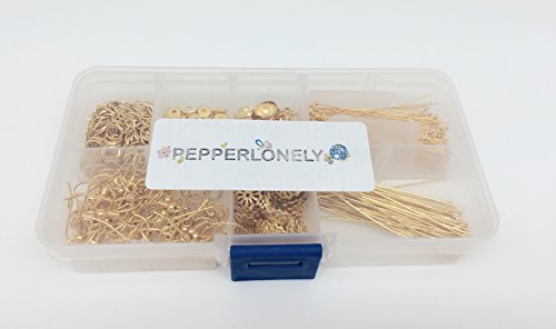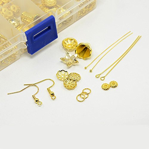 PEPPERLONELY Brand 1 Box Gold Color Earring Hooks, Ball Headpins, Jump Rings, Eyepins, Spacer Beads, Bead Caps Earrings Jewelry Making KitFeature