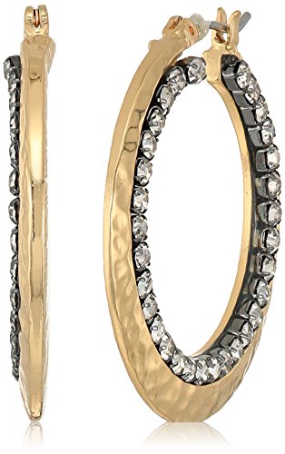 Nine West Tri-Tone and Crystal Glass Hoop Earrings