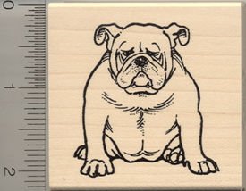 -. Title : Big Sitting Bulldog Rubber Stamp - Wood Mounted