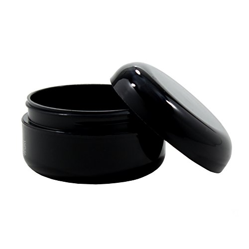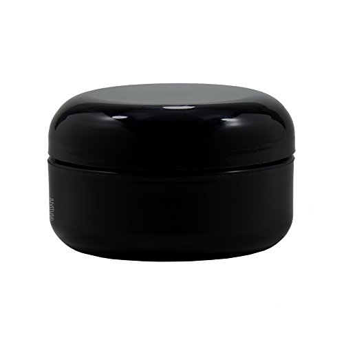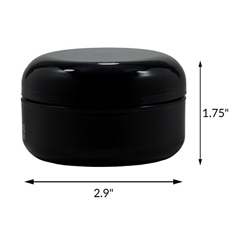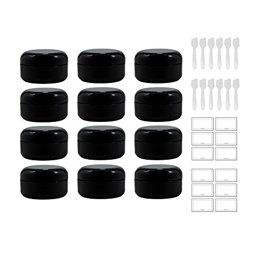 Black Low Profile Double Wall Rounded Plastic Jar with Dome Lid 2 oz / 60 ml (Pack of 12) + Spatulas and Labels