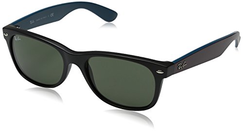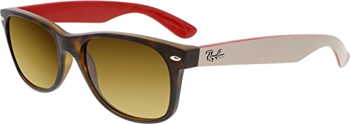 Ray-Ban Sunglasses, style RB2132 Wayfarer is a rx-able popular rectangular plastic wayfarer with metal detailing on the top corners of the frame. The RB2132 features a saddle nose bridge for extreme comfort. The Ray-Ban logo is featured on the temples. Ray-Ban Sunglasses have scratch/impact-resistant lenses. Size: 52-18-145 mm/ 55-18-145 mm