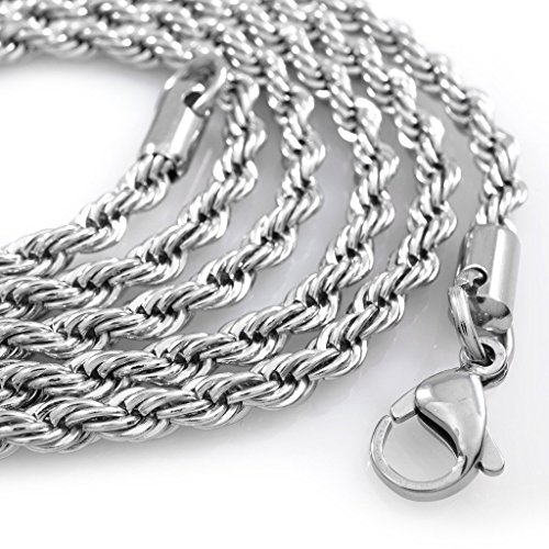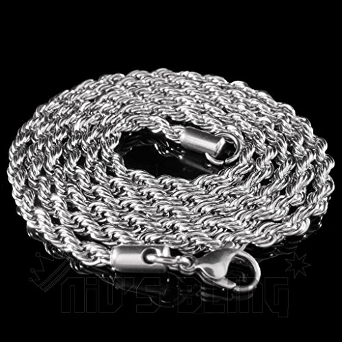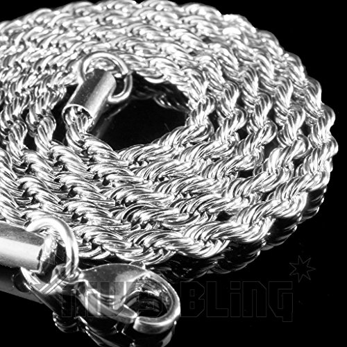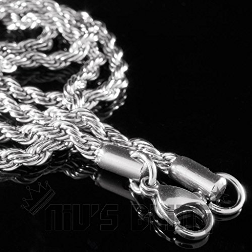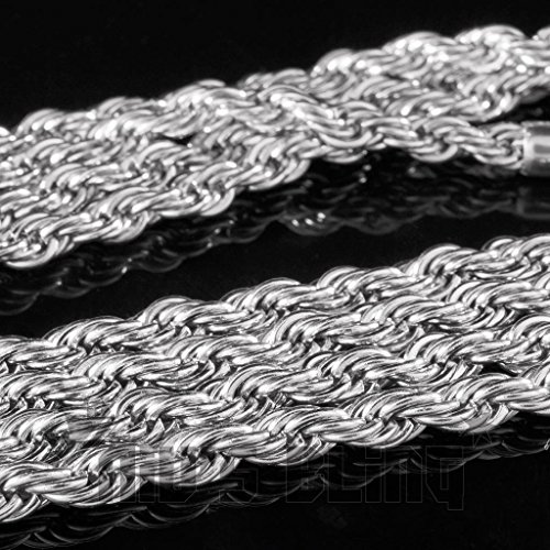 -. Title : 18K IP White Gold Plated Stainless Steel Rope Chain 4mm 20-30 inches