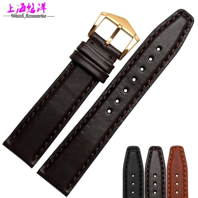 | [해외]내구성 정품 가죽 시계 스트랩 남성 및 여성 20 미리메터 다크 브라운 골드 버클 정품 가죽 시계 밴드 무료 배송 |