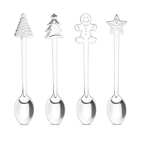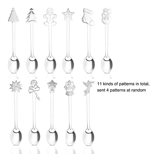 Powstro Stainless Steel Coffee Spoons Christmas Design Tableware - 4pcs(random shapes)