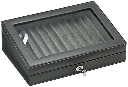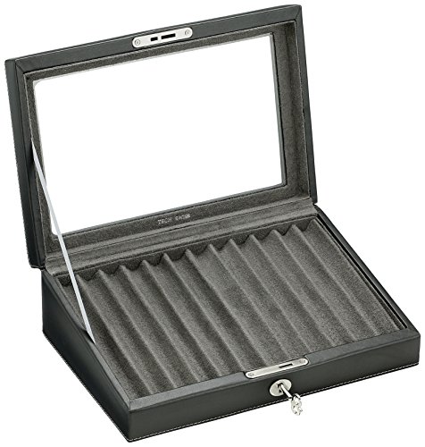 TS0432BLK- 12 Pen Box Display Storage Black Leather