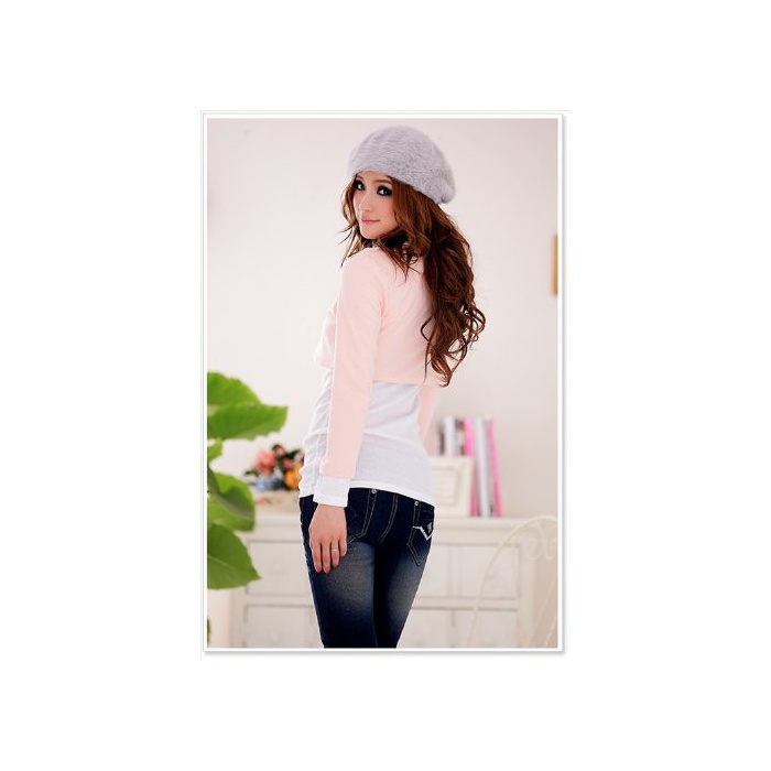사이즈 F(S.M.L) 옷 길이 32㎝ 바스트 82-94㎝ 어깨 폭 36㎝ 소매 길이 50㎝