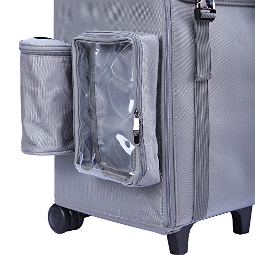 NEVER COMPROMISE ON STYLE AND DESIGN AGAIN - Premium Heavy Duty Metal Buckles make sure the Beauty Trolley stays safe and secure at all times. Rolling Makeup Case includes: Set of 3 triangular pencil/brush bags. 1 Wet Ones cylinder holder. 2 clear PVC makeup bags with zipper. 1 side tissue paper holder with PVC cover.