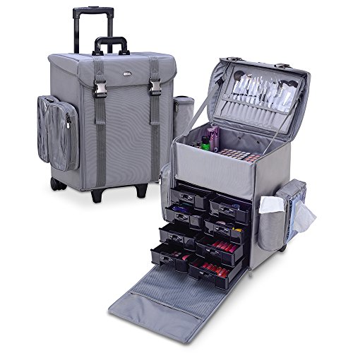 MUA LIMITED Professional Beauty Makeup Artist Trolley Case with Wheels, Soft Cosmetic Case with Removable Side Storage and Drawers, ULTIMATE...