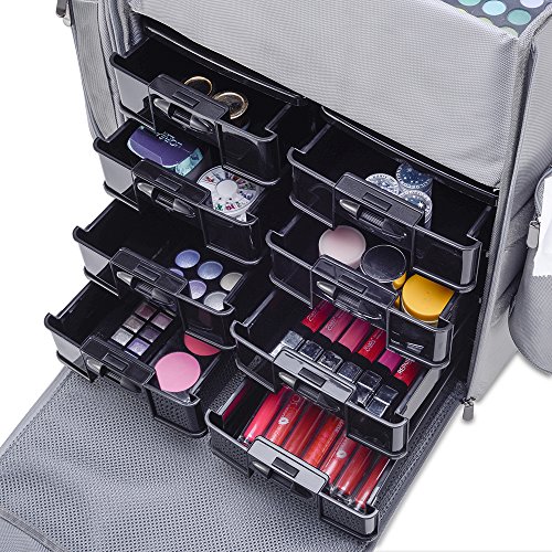KEEP YOUR MAKEUP TOOLS AND ACCESSORIES NEAT AND ORGANIZED - Everything you need at your fingertips. This makeup and cosmetic brush storage trolley has one main compartment and 8 pullout drawers. With all-new velcro clear storage bags, you can mix-and-match your storage needs and truly make this cosmetic case yours.