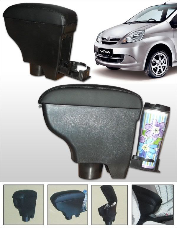 PERODUA VIVA Quality Genuine Cow Leather Black Arm Rest w/ Cup Holder