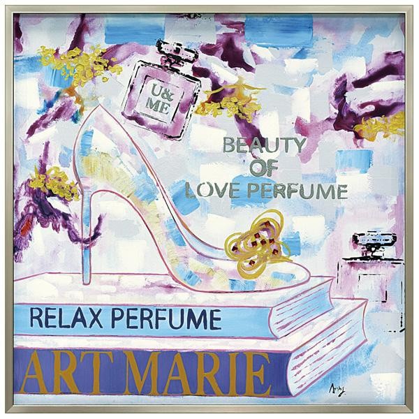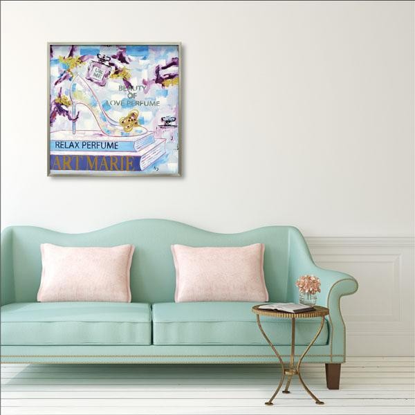 カラフルにハンドペイントされたキャンバスをリッチなフレームにセットしたモダンアートです。