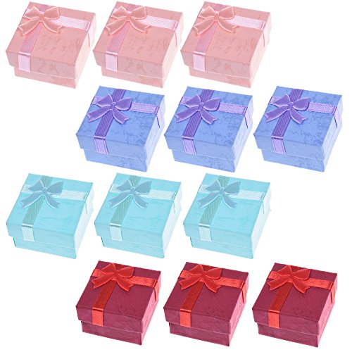 BCP 12pcs Assorted Color Small Hard Gift Box for Ring Earring Jewelry, 1-5/8 x 1-5/8 inches