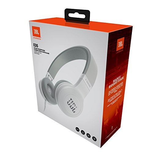 JBL E35 On-Ear Leicht Kopfhorer im Faltbaren Design mit 1-Tasten-Fernbedienung und Abnehmbarem Mikrofonkabel - Weiss