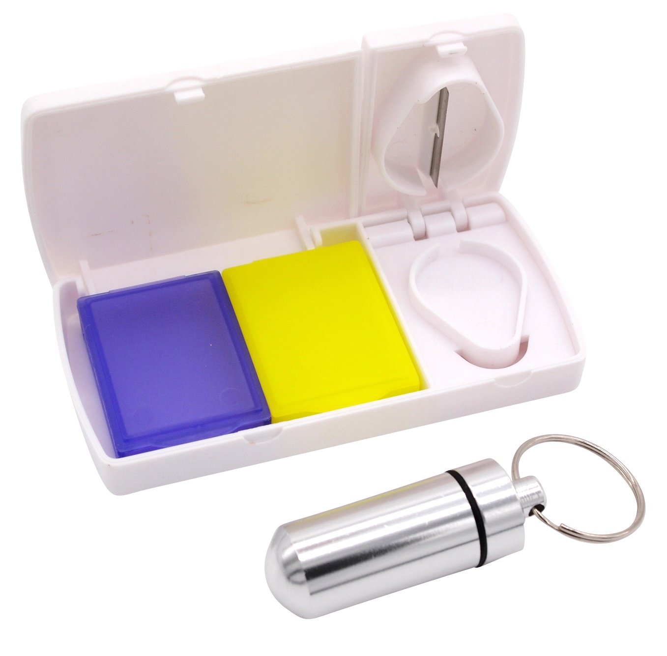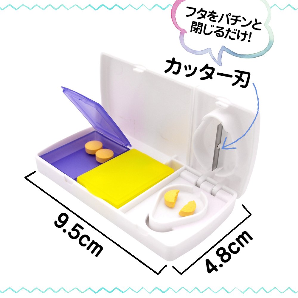 Pill cutter size (approx): 9.5 x 4.8 x 1.6 cm Material: ABS + PP