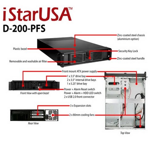 iStarUSA D Storm D-200-PFS Front Mount ATX Power Supply 2U Rackmount Server Chassis(Black)