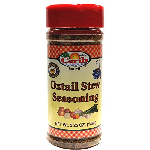 -. Feature : One 5.25 oz bottle of Carib Oxtail Stew Seasoning / Take your oxtail dish or any meat of your choice to the ultimate level of flavor! Stimulate your tastebuds! / Substitute for normal use of salt, pepper & other herbs and spices / A classic blend of herbs & spices, which captures the passion & authenticity of traditional Caribbean cuisine. Experience excitement of the Caribbean every time you cook. / Ingredients include salt, onion, garlic, monosodium glutamate (MSG for those sensitive to this additive), allspice and various spices.
