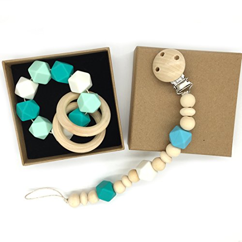 -. Title : Coskiss Wooden Baby Teether Ring Holz Schnuller Clip organischen Holz Montessori Spielzeug Silikon Perlen Teether Infant Teether BPA frei