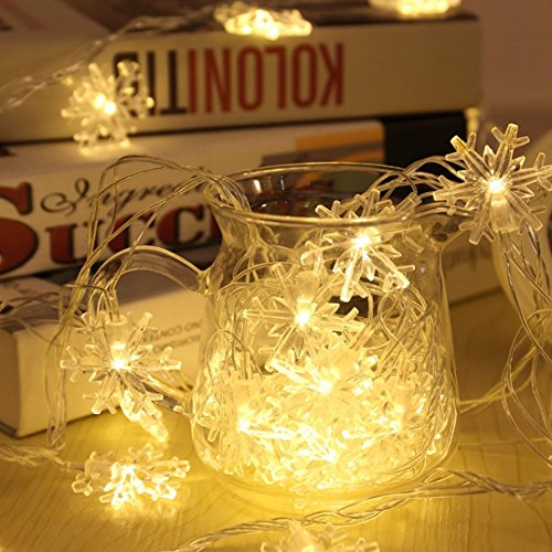 String Lights Led Battery Operated - TopYart 2.5M 20LED Snowflake Fairy Light Indoor&Outdoor String Lights For Wedding Xmas Party /Chrismas Party/Garden/Home/Bedroom/Patio Decorative - Warm White