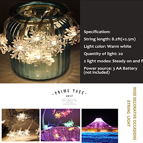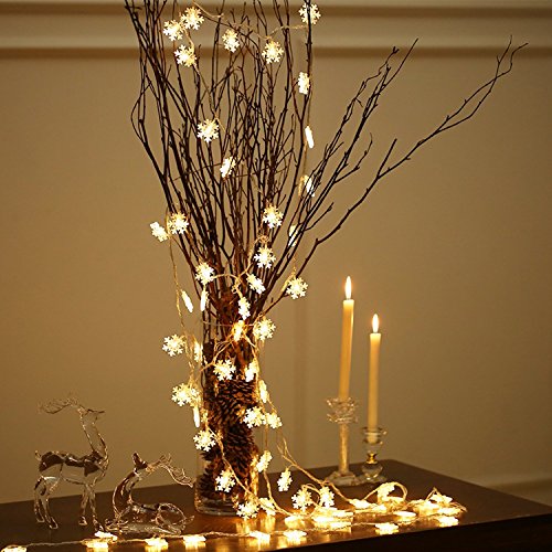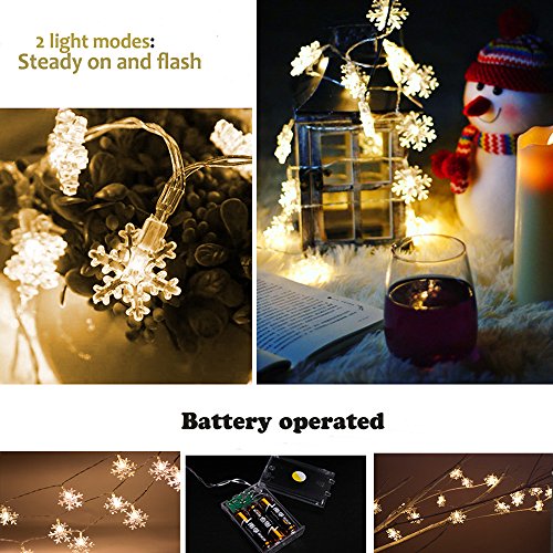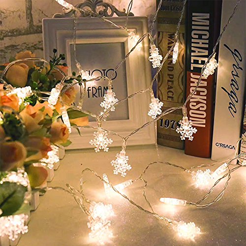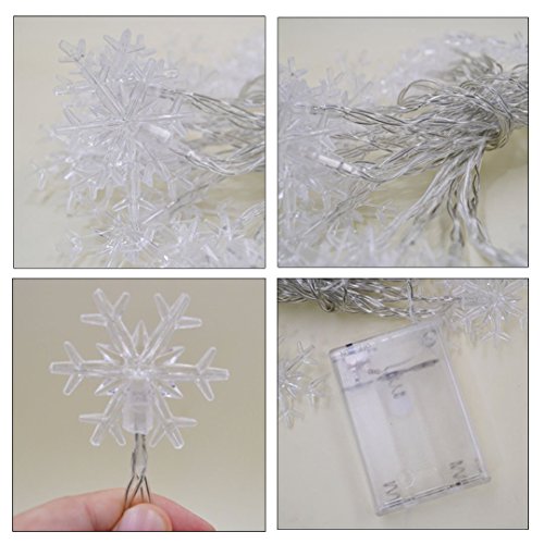 - ❄️FEATURE:Totally 8.2ft/2.5m long and 20 LED snowflakes string light - The diameter of each snowflake light is 0.7 inch and each lights 4 inch distance.
