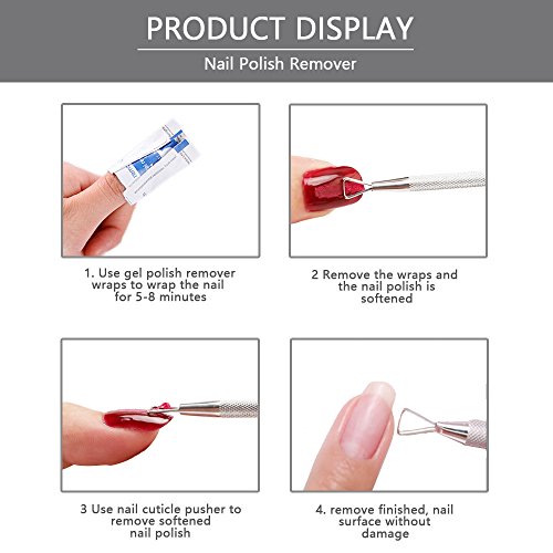 How to use? Step 1.Use professional nail remover to wrap your nail around 5 to 8 minutes. Step 2.Use the cuticle remover tool to soak off gel polish along the forefront of nail. Step 3.Perfectly remove the nail polish, then your nail surface will be smoothly as before.