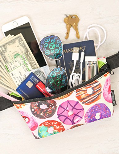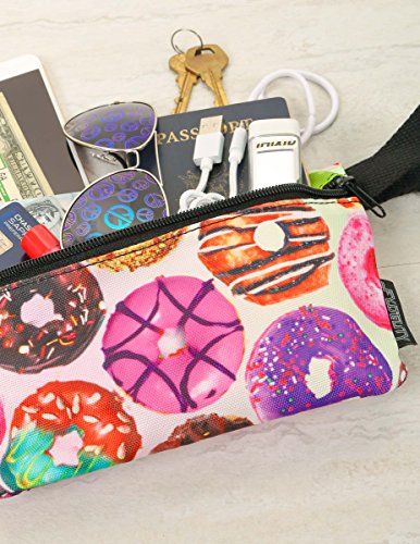 -. Feature : All original bright full-color artist designs include: Candy Hearts, Gummy Bears, MMM, Rainbow SP.R.Inkles, Lollipop, Donuts, Confetti SP.R.Inkles, Ice Cream Cones / Battle the bulge, FYDELITY's hip sacks are not your granny's fanny's. Accessorize any outfit with a FYDELITY bum bag without the belly bump. Our waist bags sleek lines won't distract from your style and they can be discreetly worn day or night. Try them on your bum, belly, hip, cross body or over the shoulder. With more than 100+ designs to choose from your can wear them loud and proud or neat and discreet. / Low profile, FYDELITY fanny packs fit just the right amount of gear to keep your hands free and your gear under wrap. They'll fit on your bum, your belly, your hip or over the shoulder without that horrible bulge. Plenty of space for your phones, keys, cash, ID wallets, sunglasses, lip balm, concert tickets, back stage passes, etc. / Wear the FYDELITY fanny pack to work, for an evening out, to music festivals, dance parties, raves, disco's, night clubs, walking your dog, the beach, the pool, on sP.R.Ing break , tailgating, sleep away camp and to the gym. FYDELITY Fanny Packs are the solution for big phones and tight jeans. Makes a great gift for travellers. / FYDELITY fanny packs measure 9" x 5.5" x 1" (24cm x 14cm x 3cm). The BELT STRAP LENGTH adjusts from 28" to 44" (70cm to 111cm) and an optional 16" extender is available for additional purchase. FYDELITY uses the best possible materials & construction techniques. All seams are double stitched and our belt straps use a cotton blend this is super strong while being soft to the touch and won't irritate your skin.